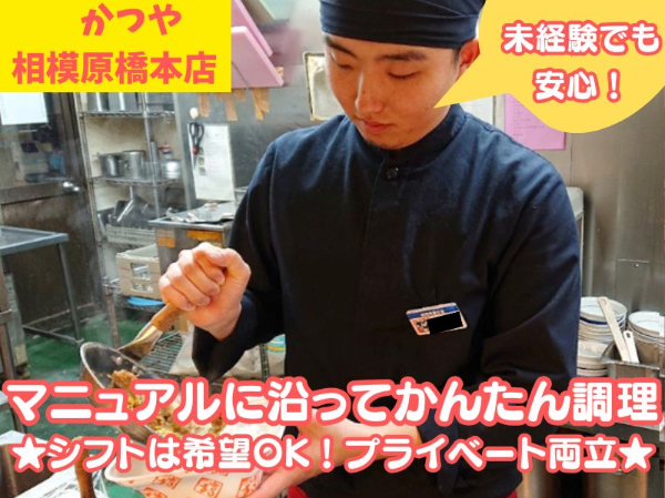 | 待遇・福利厚生 | ・昇給あり ・前払い制度あり(当社規定あり) ・制服貸与 ・車・バイク通勤OK(無料駐車場あり) ・メニュー全品50%OFFの食事補助あり ・未経験でも安心の研修あり ・社会保険あり ・正社員登用制度あり ・お友達紹介制度(1万円・規定有) - - - - - - - - - - - - - - - - - - - - - - - - - - - - - - - - - - 【新型コロナウィルスの対策も万全です】 ・こまめな手洗いとうがいの徹底 ・マスク及びフェイスシールドを用意 ・とんかつを揚げているので空気の換気も常時 ・事前に体温を測っていただき、37度以上ある方はお休みいただいています - - - - - - - - - - - - - - - - - - - - - - - - - - - - - - - - - - |